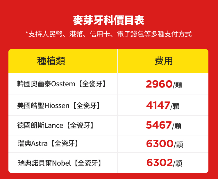 價格表